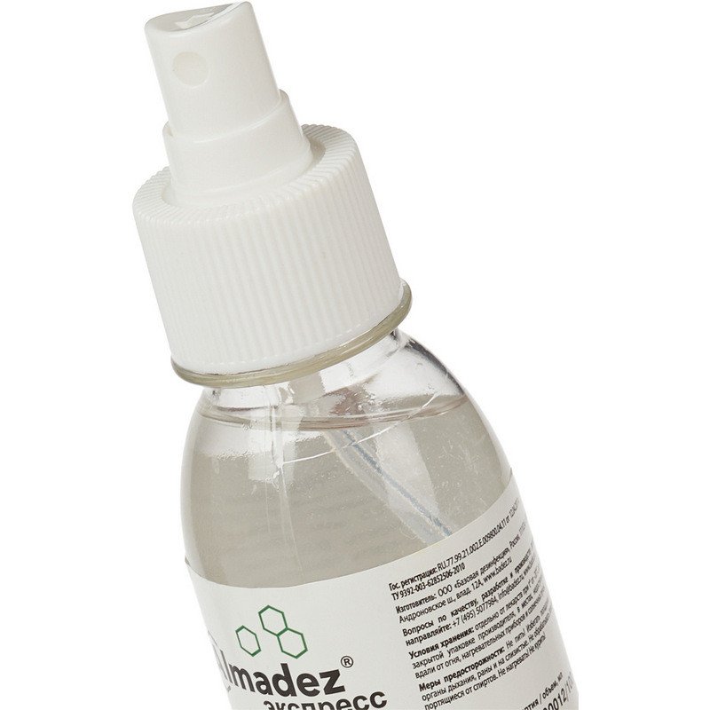 Антисептик кожный спрей «Алмадез Экспресс» спиртовой 100 мл. Химический состав средства: ЧАС, спирты, вспомогательные компоненты. Действующие вещества: алкилдиметилбензиламмоний хлорид (АДБАХ) 0.1%, изопропиловый спирт (пропанол-2) 63.5%, вспомогательные компоненты. Сфера применения: акушерские стационары, ЛПУ, клинические лаборатории, бактериологические лаборатории, детские учреждения (детсады, школы и т. п. ), пенитенциарные учреждения, предприятия общественного питания, предприятия продовольственной торговли, потребительские рынки, коммунальные объекты (бани, бассейны, гостиницы, общественные туалеты и т. п. ), учреждения соцобеспечения, парикмахерские, санитарный транспорт, отделения неонатологии, в быту населением, предприятия фармацевтической промышленности, аптеки, учреждения культуры, отдыха (кинотеатры, музеи, театры), спортивные и культурно-оздоровительные комплексы, объекты курортологии, вирусологические лаборатории. Объекты обработки: гигиеническая обработка рук, обработка инъекционного поля, обработка кожи ног для профилактики грибковой инфекции, обработка локтевых сгибов доноров, обработка операционного поля, обработка рук операционных медицинских сестер, акушерок и других лиц, участвующих в операциях и приеме родов, обработка рук хирургов, перчатки (из каучука, латекса, неопрена и т. д. ), поверхности в помещениях, поверхности приборов и аппаратов. Класс опасности: при введении в желудок — 4; при нанесении на кожу — 4; рабочего раствора — 4. Активно в отношении: бактерии (Mycobacterium tuberculosi, возбудители ВБИ, грамотрицательные бактерии, грамположительные бактерии), вирусы (атипичной пневмонии, ВИЧ, герпеса, грипп, парентеральных гепатитов, полиомиелит, птичьего гриппа (H5N1), свиной грипп (H1N1), энтеральных гепатитов), патогенные грибы (дерматофитон, кандида). Срок годности: 5 лет. Страна производства: Россия.