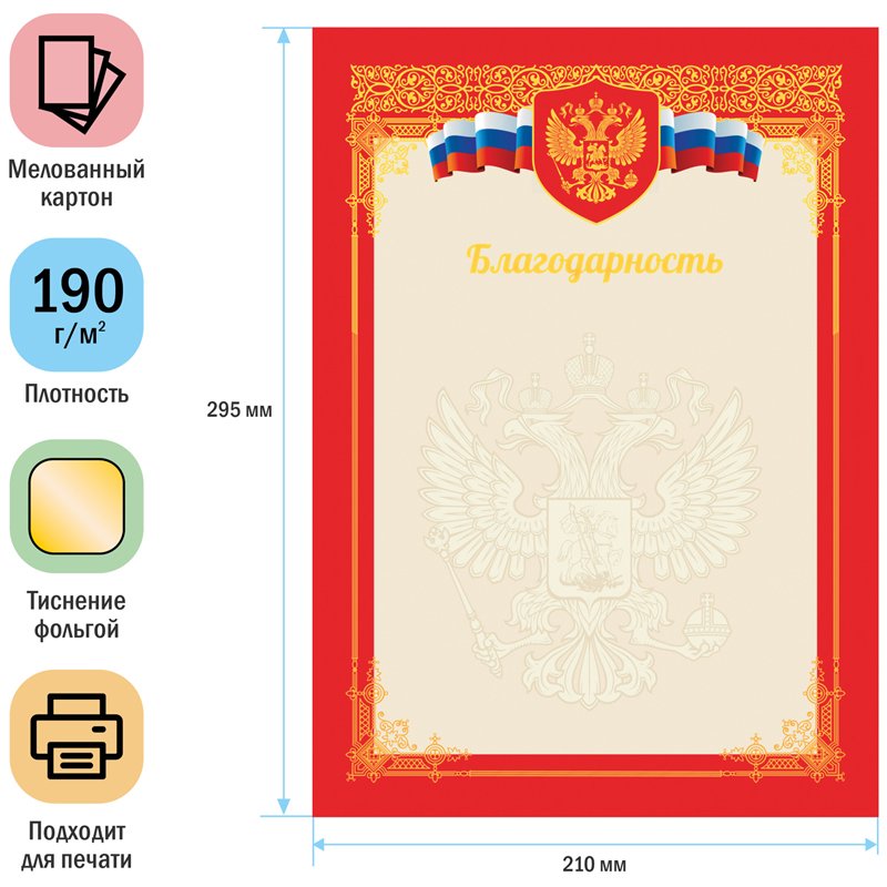 Благодарность A4, ArtSpace, мелованный картон, тиснение фольгой, красная