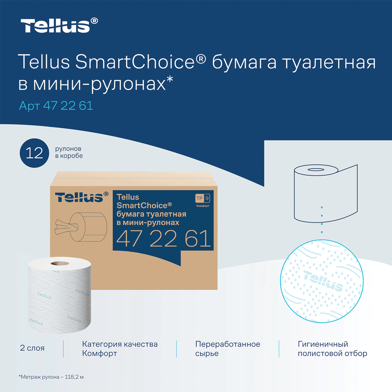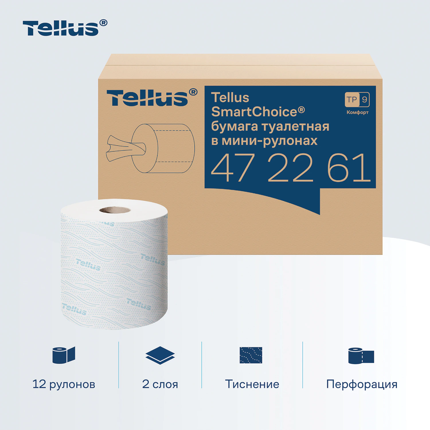 Туалетная бумага в мини-рулонах Tellus SmartChoice обладает мягкостью и высокой степенью белизны. Яркий и необычный дизайн тиснения придает продукту индивидуальность.
