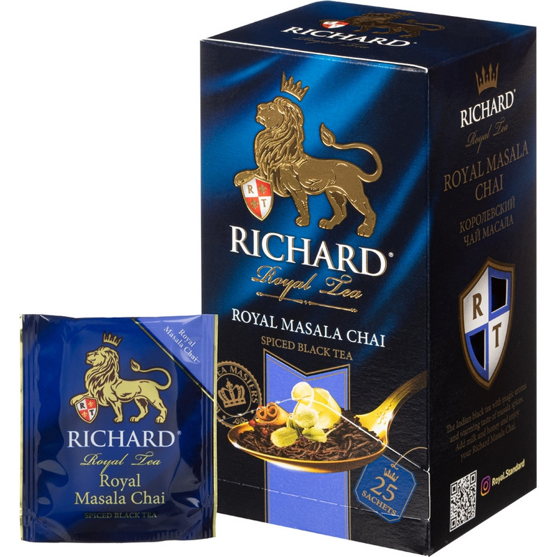 Чай Richard Royal Masala Chai черный 25 пакетиков — это байховый индийский чай высшего качества с магическим ароматом и согревающим вкусом специй Масала. Добавьте молоко и мед по вкусу и наслаждайтесь чашкой Richard Masala Chai! Состав: чай черный байховый, имбирь, натуральный ароматизатор масала, кардамон, корица, черный перец. Способ приготовления: заварить чайный пакетик в чашке или заварочном чайнике кипяченой водой и настоять 2-4 минуты. Вес: 50 г. Количество пакетиков в упаковке: 25 пакетиков по 2.5 г. Тип упаковки: картонная коробка. Условия хранения: хранить в чистом, хорошо вентилируемом помещении без посторонних запахов при температуре от 5 до 25 °С. Страна производства: Россия.