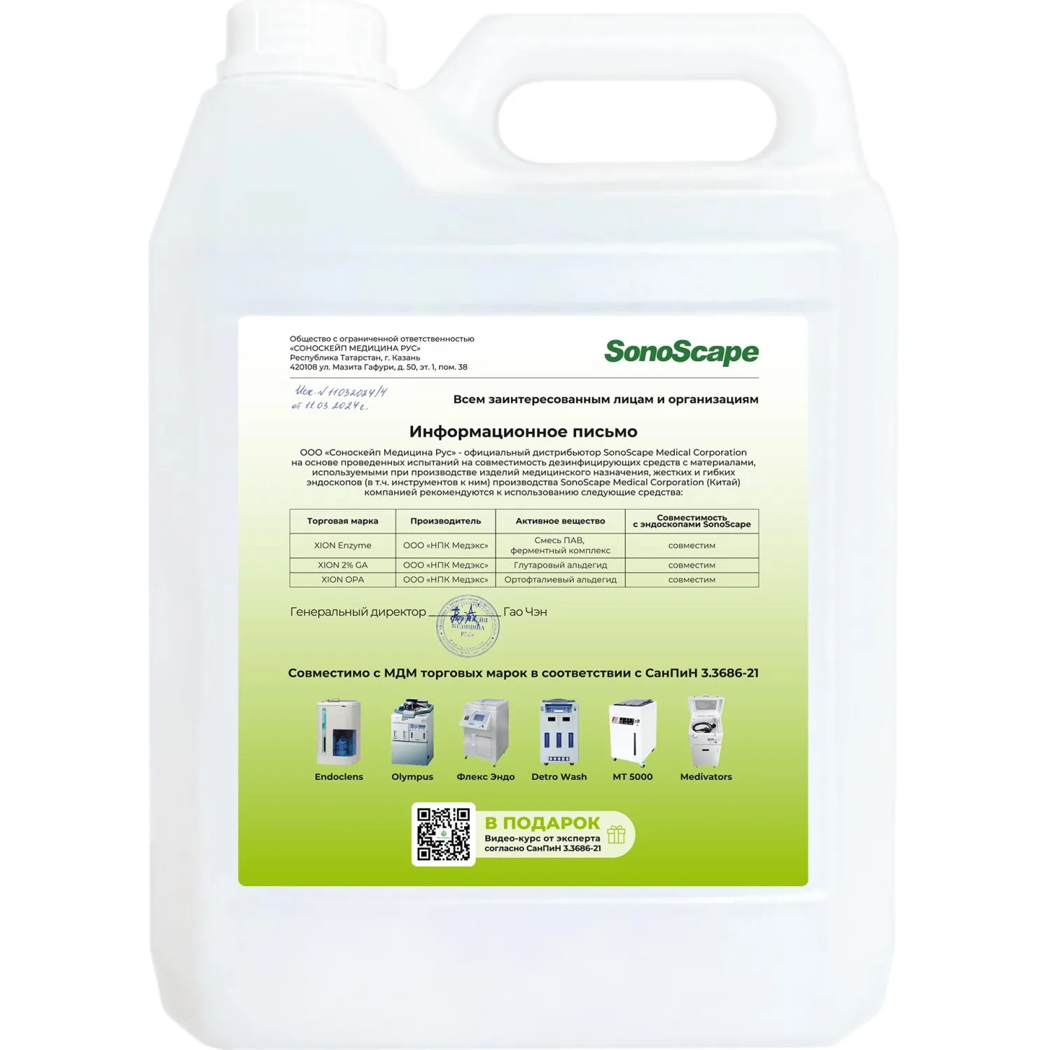 Дезинфицирующее средство КСИОН Энзим на основе смеси поверхностно-активных веществ и ферментного комплекса (амилаза, протеаза, липаза, целлюлаза), предназначенное для мойки и очистки от органических загрязнений различных поверхностей, оборудования и изделий медицинского назначения. Особенно эффективно для очистки жёстких и гибких эндоскопов, а также инструментов. Основные характеристики: Состав: смесь поверхностно-активных веществ и ферментного комплекса (амилаза, протеаза, липаза, целлюлаза). Назначение: используется для предварительной и предстерилизационной очистки медицинских изделий, эндоскопов и инструментов. Применение: подходит для использования вручную и механизированным способом (в ультразвуковых установках и моюще-дезинфицирующих машинах различных производителей). Совместимость: совместимо с материалами медицинских изделий, жёсткими и гибкими эндоскопами и инструментами от брендов Olympus, Pentax, Karl Storz, Fujinon, а также с аппаратами Bandeq, Johnson, Endoclens, Olympus, Detro Wash, Medivators, Merit, Elmasonic и другими. Экологическая безопасность: средство безопасно для использования в соответствии с установленными стандартами. Применение: Предстерилизационная очистка медицинских изделий. Очистка эндоскопов и инструментов. Подходит для использования в ультразвуковых установках и моюще-дезинфицирующих машинах. Форма выпуска: концентратОбъём: 5 литровВремя действия дезинфекции: 3-5 минутТребует нейтрализации: нетСтандарты: ГОСТ 12.1.007-76, ГОСТ Р 56990-2016, ГОСТ Р 58151.1-2018. Внешний вид и/или характеристики товара могут быть изменены производителем в соответствии с производственным процессом.