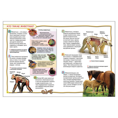 Дети узнают много интересных и неизвестных подробностей об окружающем мире, а тесты помогут закрепить полученные знания. Серия книг «100 фактов» - это увлекательный способ познания мира! Эта книга - путеводитель по миру животных. Читатель совершит увлекательное путешествие в мир дикой природы и узнает все о жизни животных - способах выживания, охотничьем мастерстве, маскировке, размножении, органах чувств. Ему станет известно, как общаются шимпанзе, почему львы живут прайдами, как императорские пингвины спасаются от холода, какие насекомые каждый год совершают путешествия длиной 4000 километров. Издание проиллюстрировано фотографиями и рисунками.