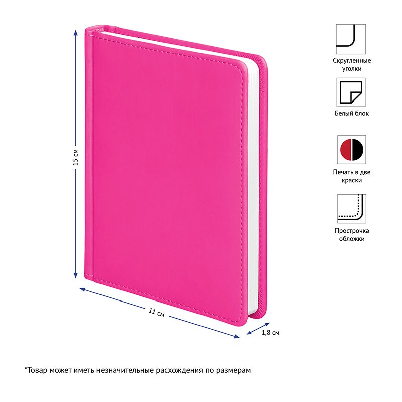 Ежедневник недатир. A6, 136л., кожзам, OfficeSpace «Winner», фуксия