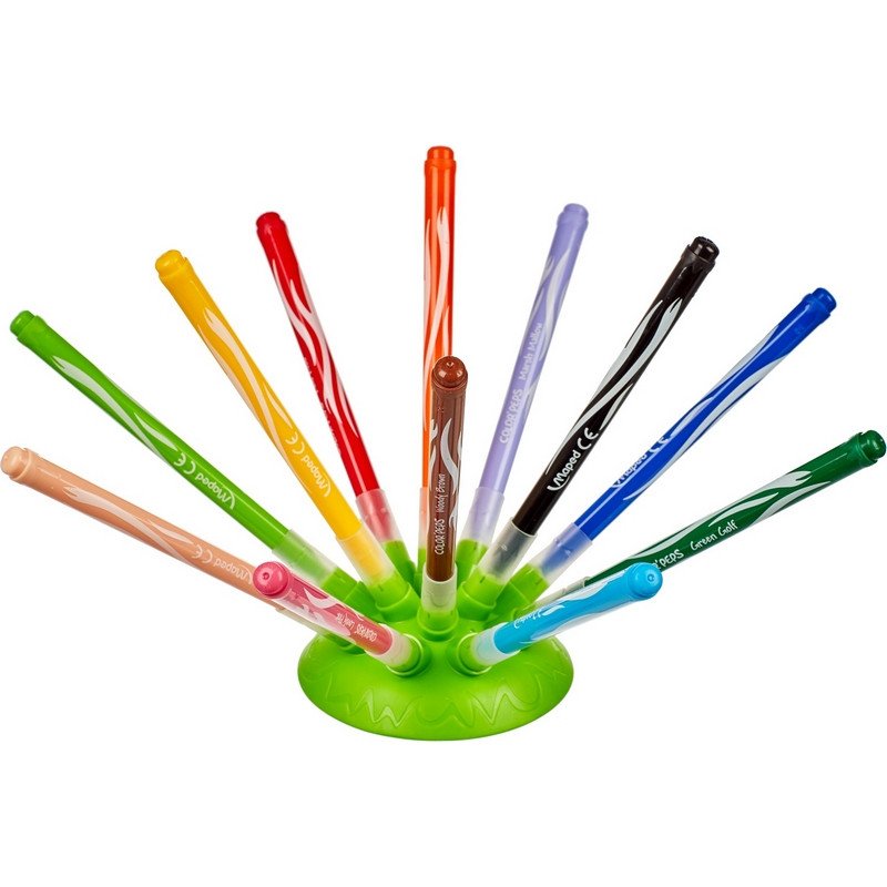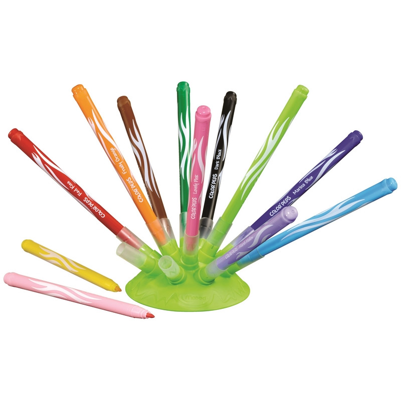 Фломастеры Jungle Innovation, 12 цветов. Красочная упаковка выполнена из цветного картона, имеется прозрачное окошко. В наборе — 12 фломастеров с длиной корпуса 140 мм и толщиной линии письма — 2 мм. В комплекте — эксклюзивная гибкая подставка, с внедренными в нее колпачками, которые таким образом не смогут потеряться. Фломастеры имеют яркие насыщенные цвета, легко смываются с кожи и тканей. Конусовидный стержень заблокирован и даже при сильном нажатии сохраняет форму.