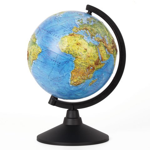 Глобус Земли физический рельефный серии «Классик». На карту глобуса нанесены страны, границы, города, континенты, моря, океаны, глубины и другая полезная информация, а так же детальный рельеф ландшафта. Подставка глобуса выполнена из высококачественного пластика черного цвета. Высота изделия — 32 см.