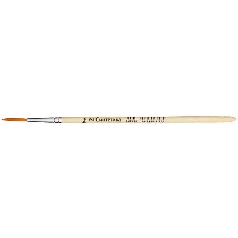 Кисть лайнер или шрифтовая №2. Это подвид круглых кистей с длинным пучком, используются для нанесения и закрепления контуров. Изготовлена из синтетики. Короткая деревянная ручка (14 см). Применяется для работы с гуашью, темперой, акрилом. Кисть без упаковки. Товар относится к ценовому сегменту «суперэконом». Имеет упрощенные характеристики и более простую упаковку. Отвечает основным требованиям потребления.