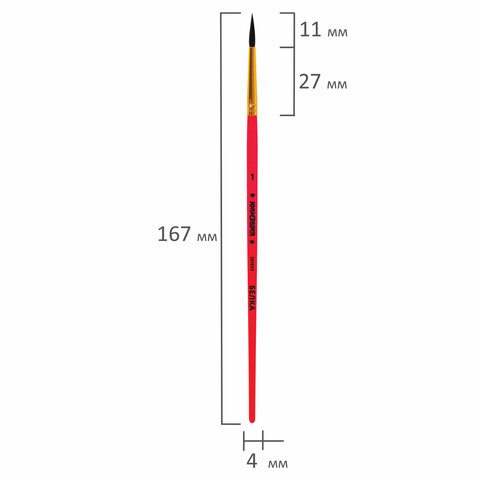 Кисть БЕЛКА, круглая, № 1, цветная ручка, ЮНЛАНДИЯ