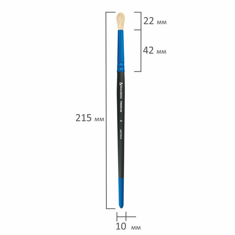 Кисть с круглой формой пучка № 8 позволит прорисовывать детали и наносить крупные мазки и линии. Пучок из щетины обладает высокой упругостью, хорошо держит форму. Ручка из древесины покрыта лаком, что защищает ее от воздействия красок и влаги – кисть долговечна и надежна. Номер кисти соответствует реальной ширине пучка в миллиметрах. Художественные кисти пригодятся как канцтовары школьникам, студентам, участникам мастер-классов, ученикам художественных школ, студий и училищ, живописных мастерских, так как они представлены широкой гаммой размеров и видов. Отлично подойдут для работы дома или на пленэре. С их помощью можно создать даже иллюстрации к сонетам Шекспира. Эти кисти используют любители для хобби и профессионалы, которые стремятся достичь такой же славы как Пикассо (Picasso), Малевич, Шагал, Моне (Claude Monet), Рембрандт (Rembrandt), Дали (Salvador Dali), Энди Уорхол (Andy Warhol), Рублёв, Фрида Кало (Frida Kahlo), Ван Гог (Vincent van Gogh), Тициан (Tician), Анри Матисс (Henri Matisse), Леонардо да Винчи (Leonardo da Vinci) и другие популярные художники. Творчество – луч света в серых буднях!
