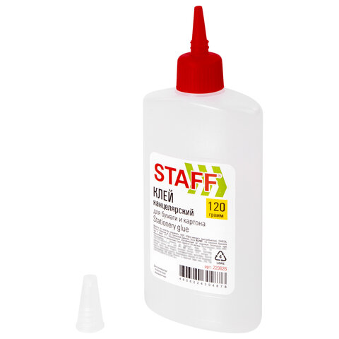 Объем клея - 120 г. Удобный дозатор для точного и аккуратного нанесения. Колпачок предохраняет клей от высыхания. Клей морозоустройчивый, не токсичный и не имеет запаха. Обеспечивает качественное склеивание, наносится тонким слоем на поверхность. Легко удаляется с рук и рабочих поверхностей. Приобрести канцелярский клей STAFF можно в нашем интернет-магазине. Спешите оформить заказ!