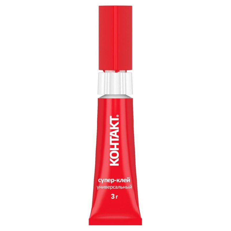 Клей универсальный Контакт супер-клей 3 г. Однокомпонентный моментальный клей для быстрого склеивания распространенных в бытуматериалов. Клеевое соединение устойчиво к органическим растворителям. Прочный клеевой шов. Срок годности 2 года.