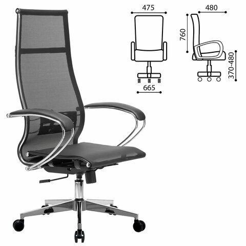 Кресло офисное МЕТТА «К-7» хромпрочная сеткасиденье и спинка регулируемыечерное