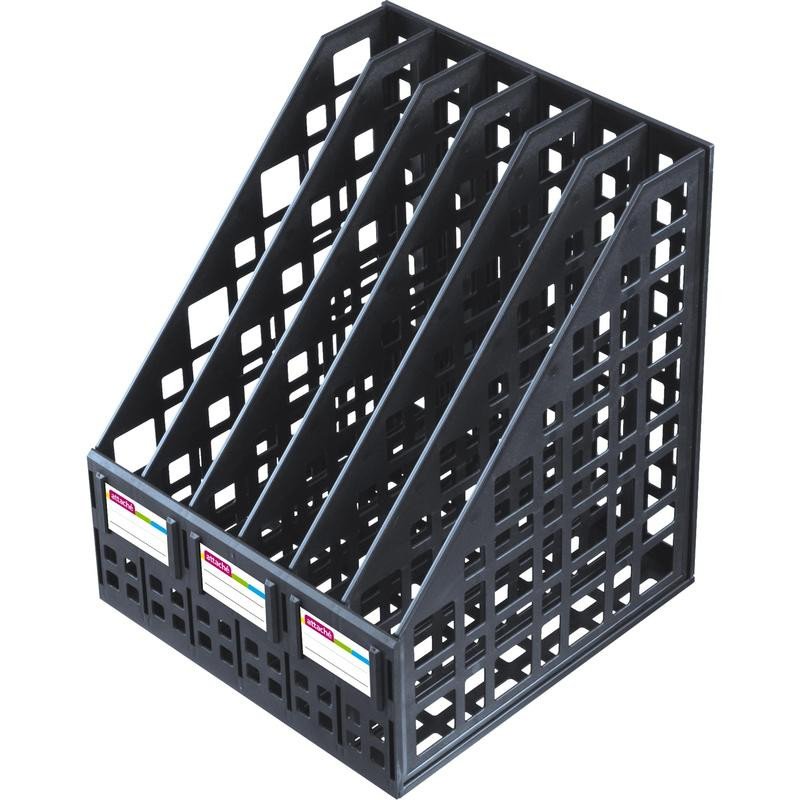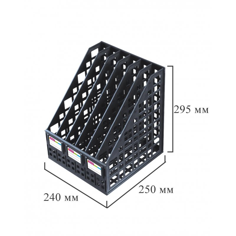 Вертикальный накопитель Attache вертикальный, имеет 6 отделений. Легкий и прочный, даже при максимальной нагрузке документов. Удобен при транспортировке и хранении. Упакованы в термопленку с цветным вкладышем. Имеет сборно-разборную конструкцию. Сетчатая поверхность. Цвет: черный. Ширина основания 240 мм. Размер изделия в собранном виде (ДxШxВ) — 250×245×295 мм. Размер изделия в разобранном виде (ДxШxВ) — 250×240×295 мм.
