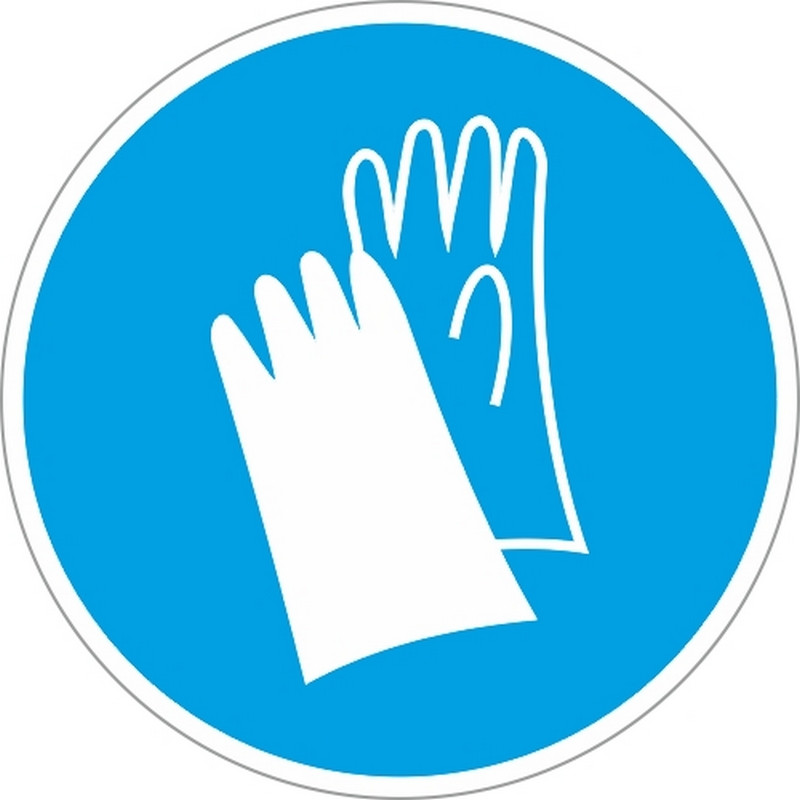 Предписывающий знак безопасности (наклейка) «Работать в защитных перчатках», предназначен для размещения на рабочих местах, где требуется защита рук от воздействия неблагоприятных факторов — присутствуют агрессивные среды либо существует вероятность поражения электрическим током. Код знака: М06Смысловое значение: Работать в защитных перчатках. Знак круглой формы с белым изображением на голубом фоне, изготовлен на белой квадратной основе. Хорошо держится на любом материале благодаря клеевому слою. Материал изготовления: самоклеящаяся ПВХ-пленкаРазмер 200×200 мм