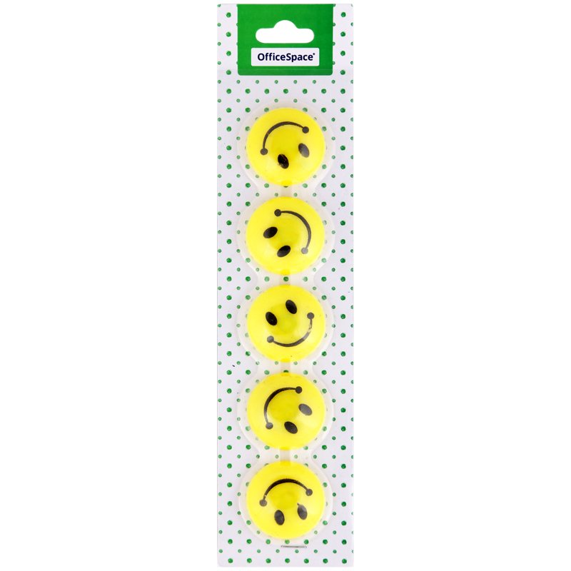 Магнит для досок OfficeSpace «Смайлик» 30мм, 5шт., европодвес