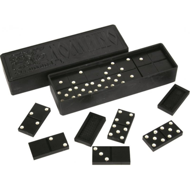 Домино — классическая игра, в процессе которой выстраивается цепь костяшек («костей», «камней»), соприкасающихся половинками с одинаковым числом очков. Костяшка домино представляет собой прямоугольную плитку, лицевая сторона которой разделена линией на две квадратные части. Каждая часть содержит от нуля до шести точек. Играют от двух до четырех человек. Для двух сдают по семь костяшек, для трех или четырех — по пять. Остальные размещаются в закрытом резерве («базаре»). Начинает игрок, у которого на руках находится «дубль шесть» (6-6). Следующие игроки выставляют костяшки с соответствующими очками (6-1; 6-2; 6-3... ). Если подходящих костяшек нет, их приходится добирать из резерва. Если ни у кого из игроков нет на руках дубля 6-6, можно начать игру дублем 5-5. Если же на руках нет ни одного дубля, «на базар» за дублями не ходят, а начинают с костяшки, имеющей наибольшее количество (например, 6-5). Игра заканчивается, когда один из игроков выложит последнюю костяшку. Возможно окончание игры «рыбой» — так называется блокировка выкладки, когда на руках еще есть костяшки, но доложить нечего. Материал: ударопрочный полистирол. Материал доски: дерево. Размер упаковки: 150×50×30 мм. Комплектация: — фишки Домино;— футляр.