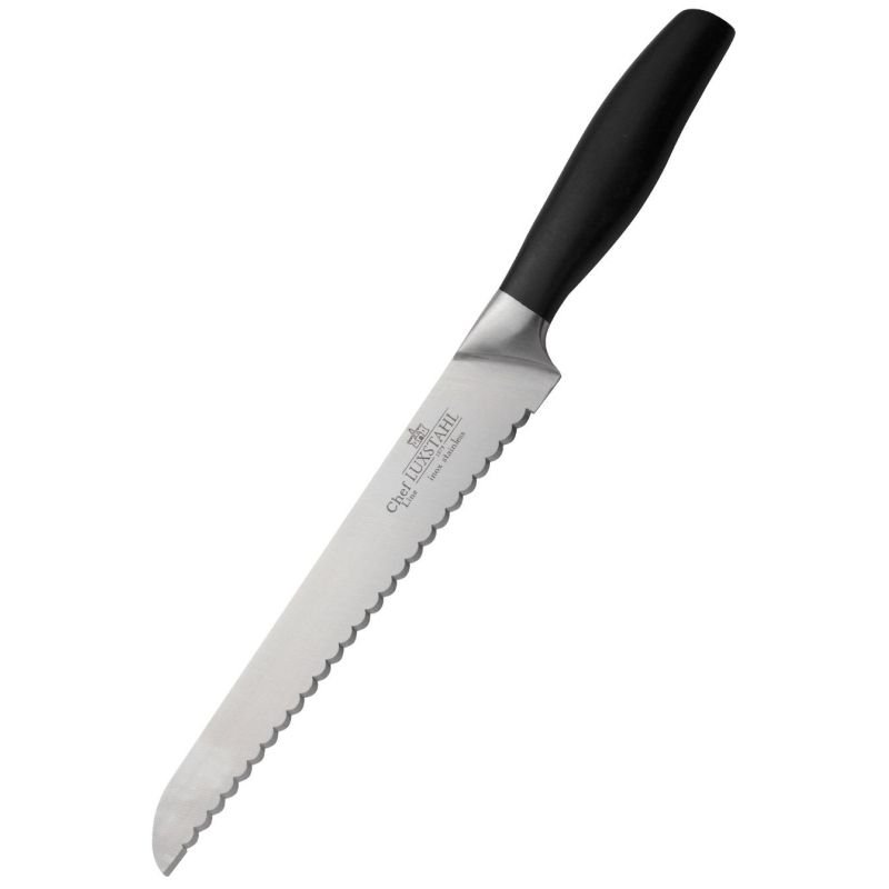 Нож кухонный Luxstahl Chef для хлеба лезвие 20.8 см (кт1306). Нож Chef Luxstahl используется для нарезки хлеба, имеет длинное заостренное лезвие с зубчиками и пластиковую ручку. Лезвие ножа выполнено из высококачественной стали марки 3Cr13. Ширина лезвия: 34 мм.