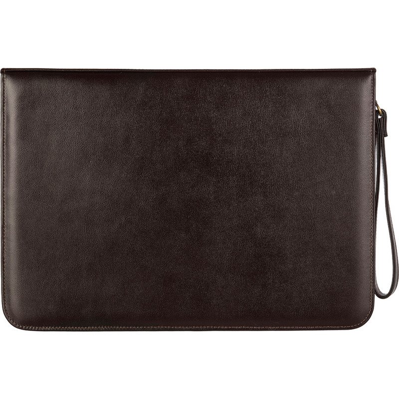 Папка деловая кожаная коричневого цвета закрывается на молнию. Имеет внутренний объемный карман с цупфером, карандашник, наборную визитницу, карман для дисков и телефона, а также горизонтальный карман. Снабжена малой ручкой-петлей. Размеры деловой папки — 380×260×30 мм.