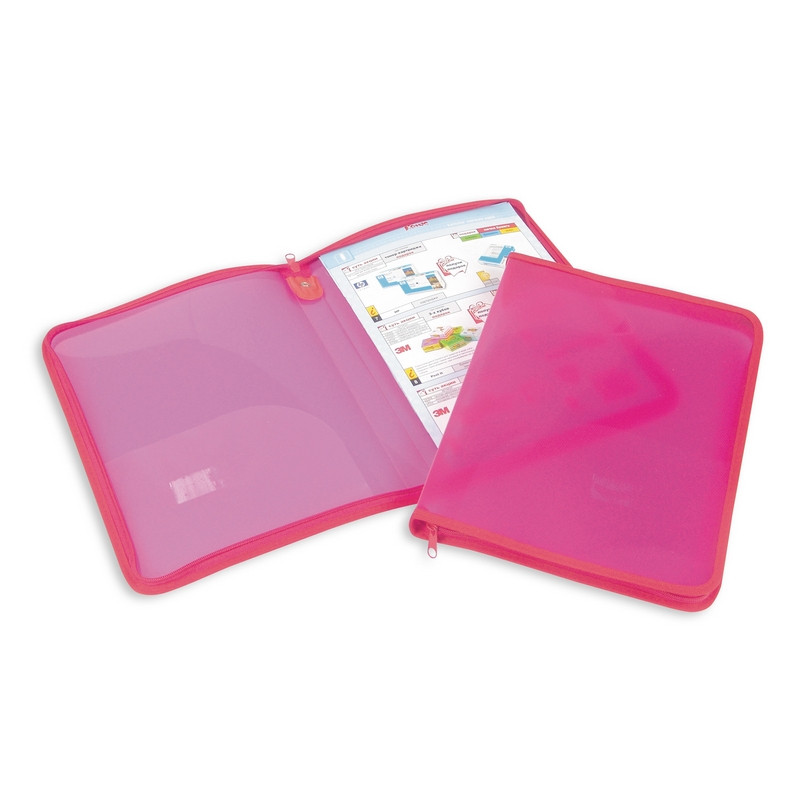 Папка-конверт Attache формата А4 закрывается с помощью застежки-молнии. Внутри одно отделение. Размеры: 320×240×26 мм. Изготовлена из прочного прозрачного пластика толщиной 0.5 мм розового цвета. Снаружи — тиснение «мелкий песок». Удобна для переноски документов, предотвращает их смятие и загрязнение. Вместимость 200 листов бумаги А4.
