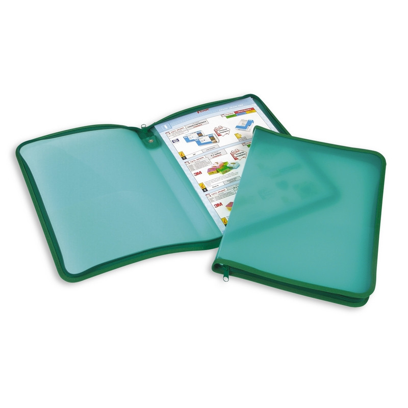 Папка-конверт Attache формата А4 закрывается с помощью застежки-молнии. Внутри одно отделение. Размеры: 320×240×26 мм. Изготовлена из прочного прозрачного пластика толщиной 0.5 мм зеленого цвета. Снаружи — тиснение «мелкий песок». Удобна для переноски документов, предотвращает их смятие и загрязнение. Вместимость 200 листов бумаги А4.