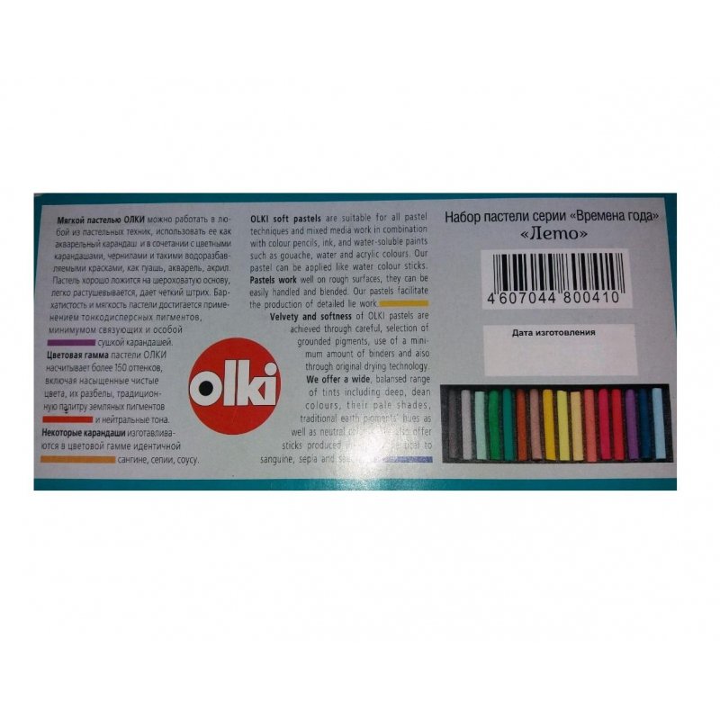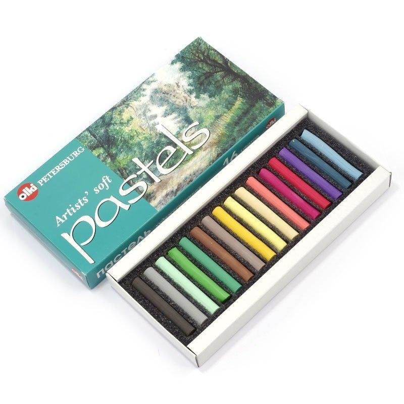 Мягкая пастель Olki серии Soft — разновидность сухой пастели, предназначенная для выполнения работ в традиционной технике. Пастель хорошо ложится на шероховатую основу, легко поддаётся растушёвке, создавая мягкую, бархатистую фактуру поверхности. Наложение пастели плотными слоями позволяет добиваться особой глубины и насыщенности цветового тона. В наборе 16 цветов.