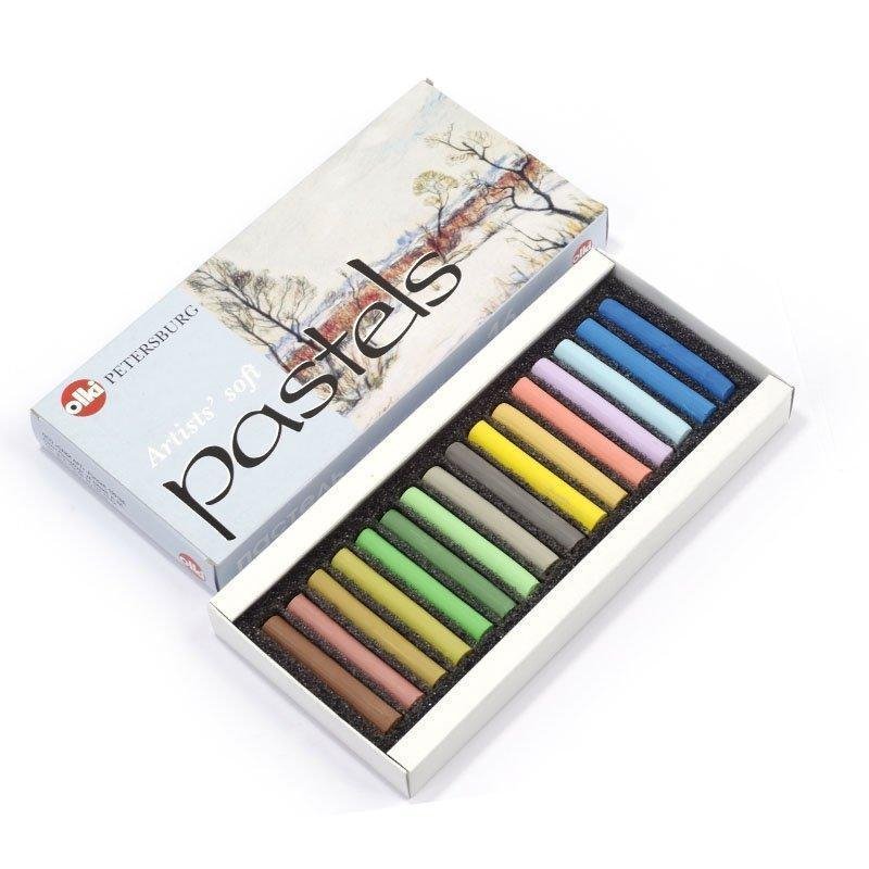 Мягкая пастель Olki серии Soft — разновидность сухой пастели, предназначенная для выполнения работ в традиционной технике. Пастель хорошо ложится на шероховатую основу, легко поддаётся растушёвке, создавая мягкую, бархатистую фактуру поверхности. Наложение пастели плотными слоями позволяет добиваться особой глубины и насыщенности цветового тона. В наборе 16 цветов.