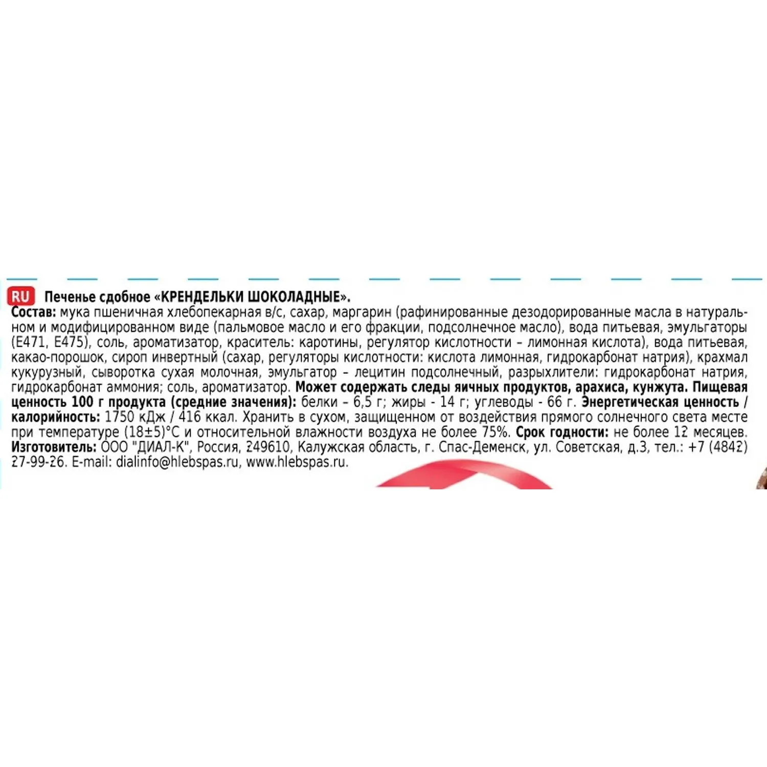 Крендельки Шоколадные с сахарной обсыпкой лёгкое и рассыпчатое печенье в затейливой форме кренделя. Хрустящее, тающее во рту лакомство, с большим количеством какао в составе, декорировано сахарной крошкой. Станет отличным дополнением к чашке любимого напитка. Состав: мука пшеничная хлебопекарная высшего сорта, сахар, маргарин(рафинированные дезодорированные масла в натуральном и модифицированном виде (пальмовое масло и его фракции, подсолнечное масло), вода питьевая, эмульгаторы (Е 471, Е 475), соль, ароматизатор, краситель: каротины, регулятор кислотности лимонная кислота), вода питьевая, какао-порошок, сироп инвертный (сахар, регуляторы кислотности: кислота лимонная, гидрокарбонат натрия), крахмал кукурузный, сыворотка сухая молочная, эмульгатор лецитин подсолнечный, разрыхлители: гидрокарбонат натрия, гидрокарбонат аммония, соль, ароматизатор. Пищевая ценность на 100 г: белки 6.5 г, жиры 14 г, углеводы 66 г. Энергетическая ценность: 1750 кДж/416 ккал. Условия хранения: хранить при температуре от 13 до 23 С и относительной влажности воздуха не более 75%.