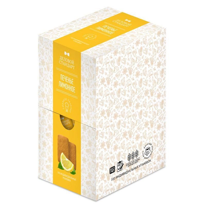 Печенье «Деловой Стандарт» — хрустящее печенье, на основе пшеничной муки с лимонным вкусом. Отлично подойдет для небольшого перекуса за чайной паузой дома или на работе! Каждое печенье упаковано индивидуально, поэтому его удобно брать с собой, а также расположить в зонах переговорной, шоу-рума или ресепшн. Хрустящий вкус и пряный ароматный — заряд энергии на целый день. Состав: мука пшеничная хлебопекарная в/с, маргарин (рафинированные дезодорированные масла в натуральном и модифицированном виде (пальмовое масло, подсолнечное масло), эмульгаторы (Е471, Е475, Е322), ароматизатор «Лимон», соль пищевая, краситель Е160а, регулятор кислотности лимонная кислота, сахар белый кристаллический, вода питьевая, инвертный сахарный сироп, сухой яичный белок, агент влагоудерживающий пропиленгликоль Е1520, консерванты Е260, Е262(i), Е281. Содержит соевый лецитин. Продукт не является ГМО, не содержит и не был изготовлен из генетически модифицированных организмов. Пищевая ценность в 100 г продукта: белки —7.4 г, углеводы —75 г, жиры — 22 г. Энергетическая ценность: 530 ккал, 2224 кДж. Срок годности: 6 месяцев. Хранить при температуре не более 18±5°С, относительной влажности не более 75%. Масса нетто: 450 г. Тип упаковки: картонная. Страна производства: Россия. Соответствует требованиям ТР ТС 021/2011«О безопасности пищевой продукции», ГОСТ 24901-2014.