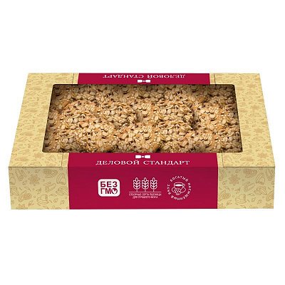 Печенье сдобное «Деловой Стандарт» миндальное с шоколадом 335 г. Верхняя поверхность этого нежного хрустящего печенья декорируется дробленым миндалем. Донышко печенья покрывается темным шоколадом и еще на не застывший шоколад посыпается аппетитно-хрустящая миндальная бисквитная крошка. Состав: Мука пшеничная хлебопекарная высшего сорта, шоколад (какао тертое, сахар белый, масло какао, эмульгатор лецитин соевый, ароматизатор ванилин), сахарная пудра, ядро ореха миндаля обжаренное дробленое, жир кондитерский (масло растительное (подсолнечное), в том числе модифицированное), вафельная крошка на посыпку (сахар белый, ядро косточки абрикосов, мука пшеничная хлебопекарная высшего сорта, яичный белок, лактоза, молочный белок, разрыхлитель карбонат аммония, ароматизаторы), меланж яичный (охлажденный), крахмал кукурузный, молоко сухое обезжиренное, эмульгатор лецитин соевый, разрыхлители: гидрокарбонат натрия, гидрокарбонат аммония, пирофосфат натрия, соль пищевая, ароматизатор, загуститель гуммиарабик, молочный белок, красители пищевые: «Сахарный колер III», «Паприка», регулятор кислотности лимонная кислота, стабилизатор инвертаза, вода питьевая. Продукт может содержать следы других орехов, арахиса, кунжута и продукты их переработки. Пищевая ценность в 100 г продукта: белки - 8.5 г, жиры - 29 г, углеводы - 59 г. Энергетическая ценность в 100 г продукта: 2220 кДж / 530 ккал Хранить в чистых, хорошо вентилируемых складах, при температуре 18 5°С и относительной влажности воздуха не более 75 %.