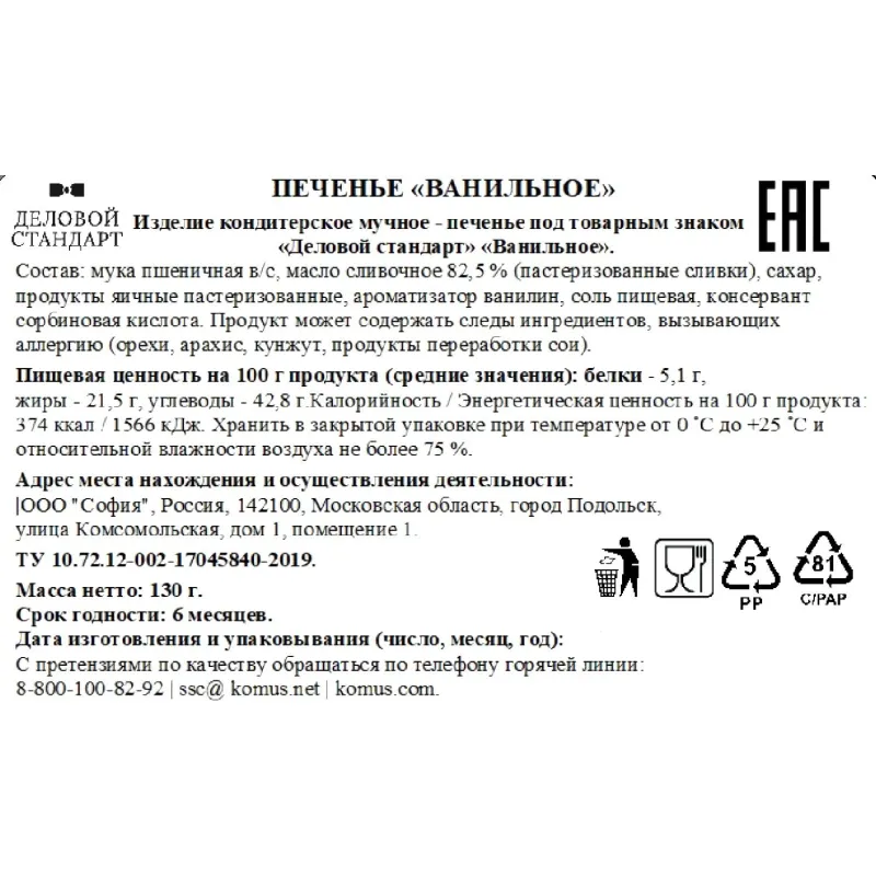 Печенье сдобное Деловой Стандарт Ванильное 130г