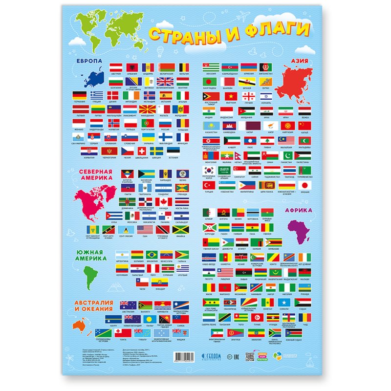 Плакат дидактический Геодом «Страны и флаги», 450×640мм