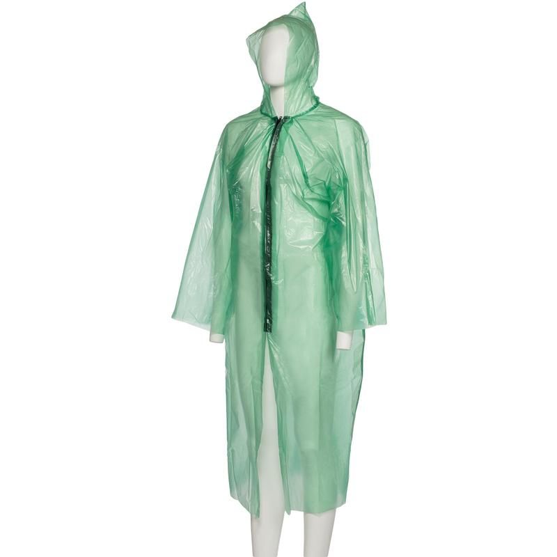 Плащ-дождевик на молнии с капюшоном. Размер XXXL, плотность 70 мкм, что позволит продлить срок использования. Изготовлен из плотного полиэтилена, прочные швы, защита от дождя и ветра.