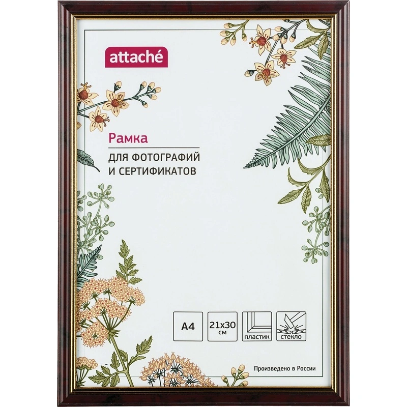 Рамка для сертификатов Attache 21х30см (пластик, защитное стекло, красное дерево с золотом)