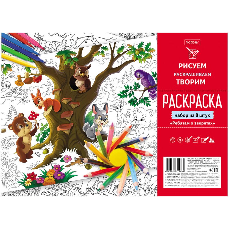 Раскраска-набор А4 Hatber «Ребятам о зверятах»