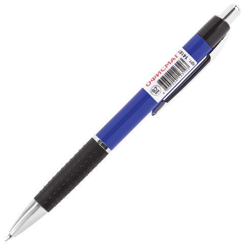 Корпус ручки отличается стильным дизайном, а резиновый грип для удобства письма исключает скольжение пальцев. Сменный стержень длиной 107 мм. Диаметр пишущего узла, равный 0.7 мм, создает тонкую по толщине линию письма, равную 0.35 мм. Цвет чернил - синий. Оригинальный дизайн ручки и эргономичный корпус с комфортной зоной захвата сделает письмо легким и точным. Приобретайте автоматическую шариковую ручку ОФИСМАГ в нашем интернет-магазине!