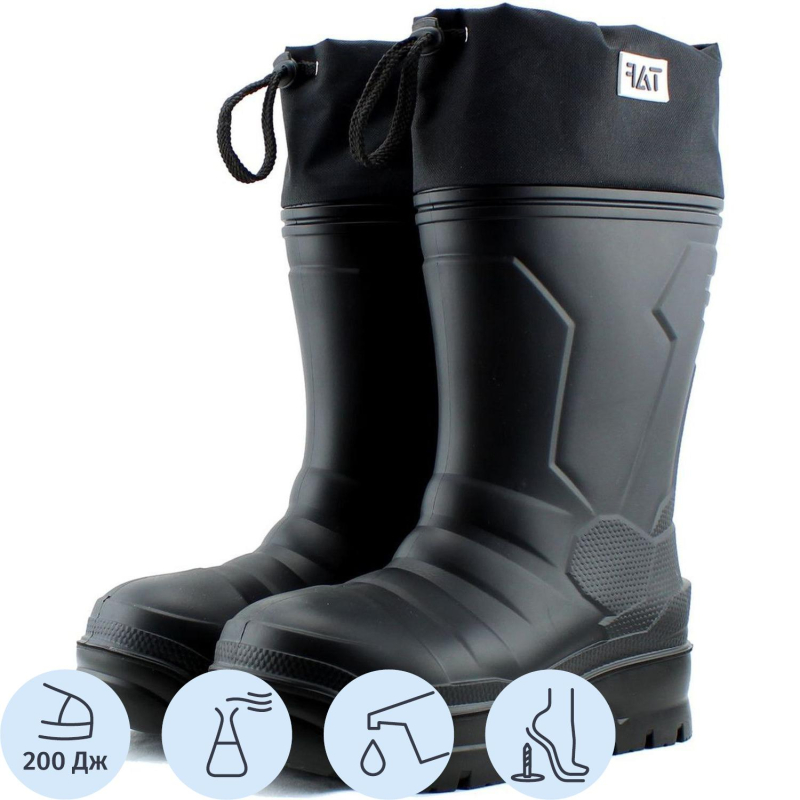 Сапоги рабочие мужские ТAF FS ЭВА-ПУ оксфорд утепленные черные размер 39. Это эксклюзивный сапог последнего поколения для безопасной и комфортной работы в условиях мороза до 60°С. Безопасность ног рабочего обеспечивают: композитный защитный подносок и кевларовая стелька. Стелька вмонтирована внутрь подошвы, что обеспечивает дополнительную герметичность сапога. Имеются дополнительные ребра жесткости и, в пяточной части, шпора для легкого снятия сапог с ног. Высота голенища - 40 см. Ячеистая структура внутренней части подошвы, способствует отводу конденсата. Подошва из полиуретана (ПУ) крепится методом прямого прилива. Утеплитель - шерсть, полиэстер, искусственный мех. Соответствие регламенту ТР ТС 019/2011 'О безопасности средств индивидуальной защиты'. Текстильная надставка изготовлена из ткани Оксфорд с полиуретановым покрытием для обеспечения водо- и грязеотталкивающих свойств. В комплект текстильной надставки входят: люверсы, шнурок, фиксатор, шеврон. ЗАКОНОДАТЕЛЬНЫЕ И ТЕХНИЧЕСКИЕ ДОКУМЕНТЫ: