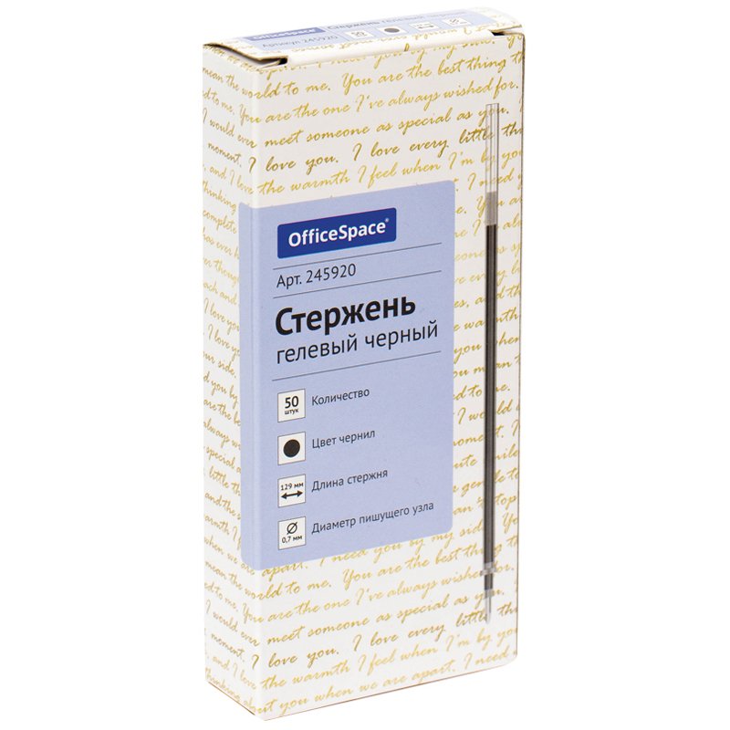 Стержень гелевый OfficeSpace черный, 129мм, 0.7мм