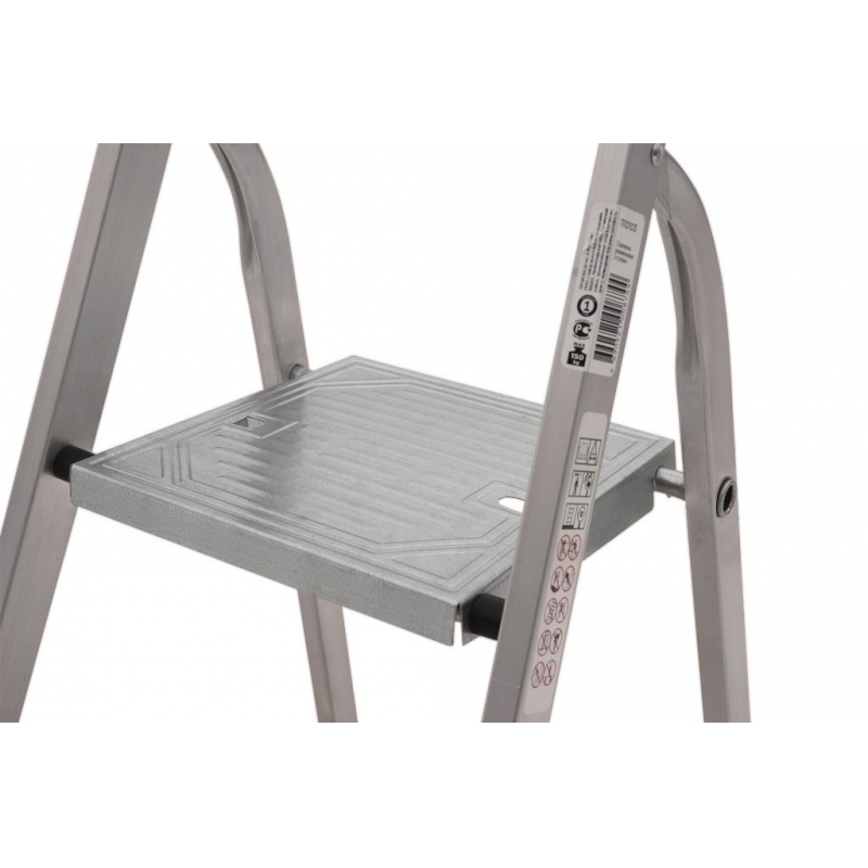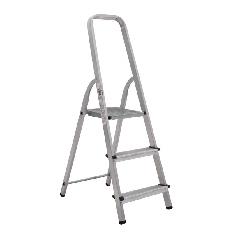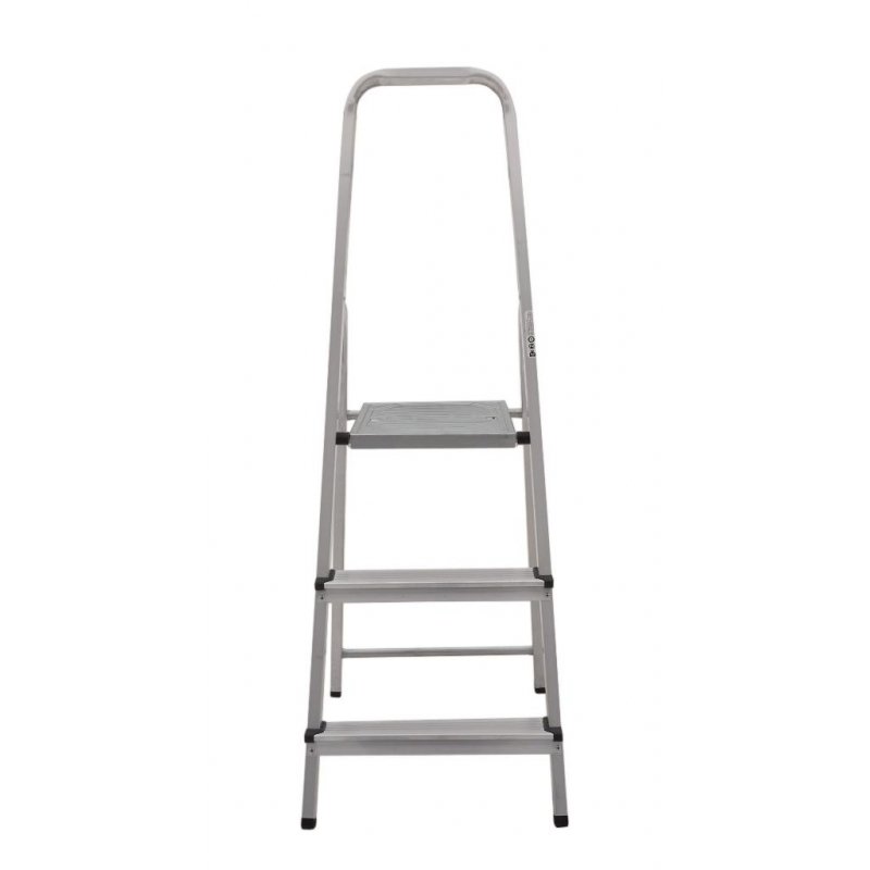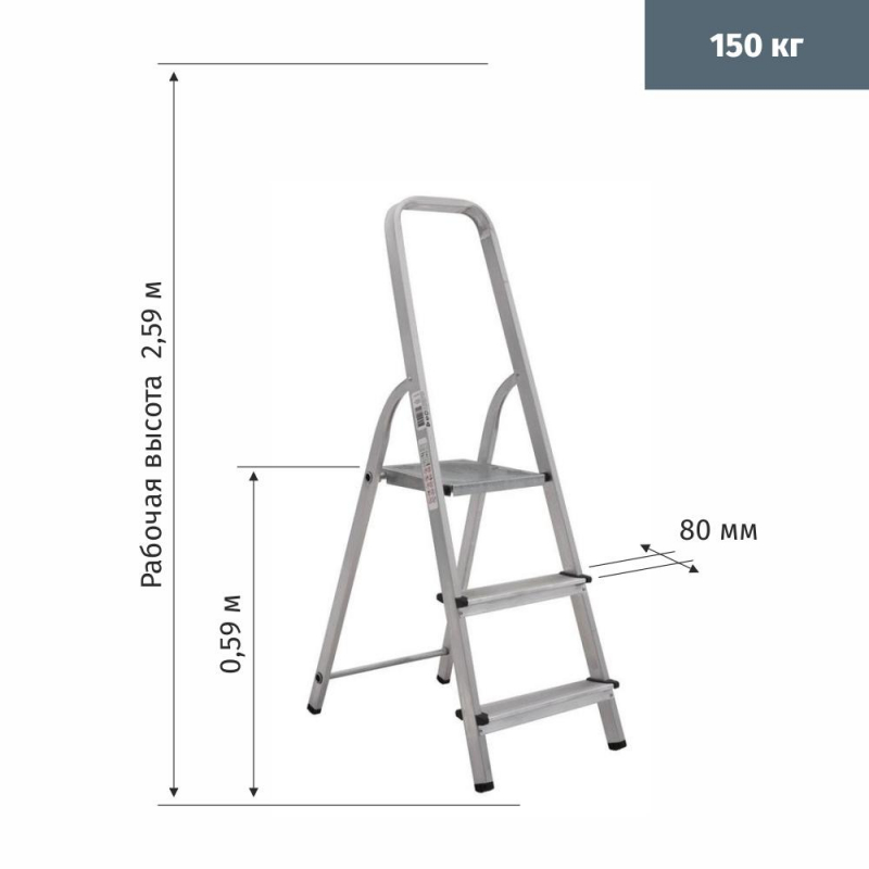 Высокая прочность и надежность при небольшом весе изделия. Легко устанавливается и обеспечивает высокий уровень комфорта. Стойки и ступени из экструдированных алюминиевых профилей. Опорные наконечники из прочного пластика для устойчивого положения. Компактность при хранении и транспортировке. Практичность и внимание к каждой детали гарантируют безопасность работы на любой высоте. Стремянка имеет 3 ступени.