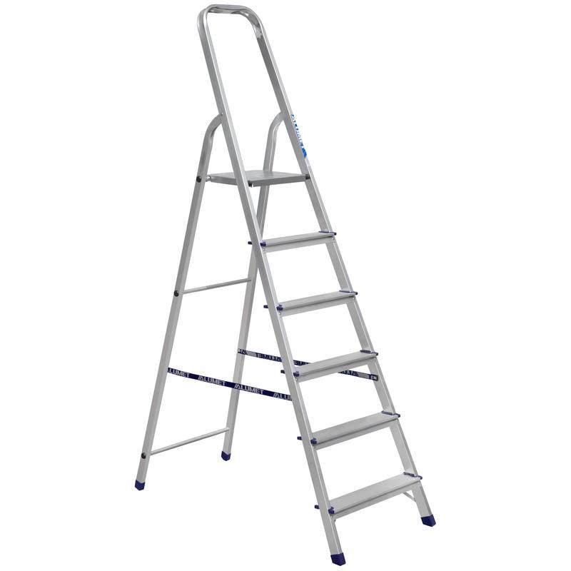 Стремянка Ам706 представляет собой свободностоящую переносную лестницу, сужающуюся к верху, имеющую сторону подъема (переднюю ногу), опорную сторону (заднюю ногу), рабочую площадку и раскладывающуюся для выполнения определенной задачи. Дуга безопасности конструктивно выполнена совместно со стороной подъема. Стремянка алюминиевая изготовлена из высокопрочного алюминиевого профиля. Задняя и передняя нога соединены между собой. Рабочая площадка выполнена из оцинкованной стали. Ступени имеют рифленую поверхность. Башмаки изготовлены из высокопрочного пластика. Стремянка в рабочем положении надежно фиксируется рабочей площадкой, а начиная с пятиступенчатой и выше страховочными ремнями. Количество ступеней от 3-х до 10-и. Стремянка алюминиевая серии АМ предназначена для проведения различных видов работ на высоте до 4 м как в быту, так и на производстве. Необходимо отметить, что производство стремянок удалась автоматизировать, что исключило влияние 'человеческого фактора' на качество продукции. При этом стремянки приобрели дополнительную прочность, возросла их надежность и долговечность. Внешний вид и/или характеристики товара могут быть изменены производителем в соответствии с производственным процессом.