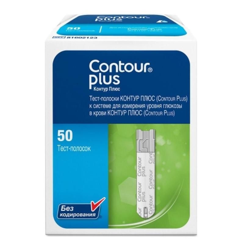 Тест-полоски Contour Plus предназначены для проведения самостоятельного измерения уровня глюкозы в цельной крови. Система Contour Plus имеет ряд особенностей, которые обеспечивают получение точного результата сравнимого с лабораторным. Точность системы превосходит требования нового международного стандарта ISO 15197:2013. В системе используется технология «Без кодирования». Данная технология позволяет прибору каждый раз, когда вставляется тест-полоска, кодироваться автоматически, тем самым устраняется необходимость ручного ввода кода — возможного источника ошибок. Не нужно тратить время на ввод кода или кодового чипа/полоски. Система обладает технологией нанесения образца крови «Второй шанс». Данная технология дает возможность дополнительно нанести кровь на ту же тест-полоску в случае, когда первого образца крови было недостаточно — не нужно тратить новую тест-полоску. Глюкометр имеет большой экран, а также позволяет настраивать звуковые напоминания об измерении после еды, что помогает в рабочей суматохе вовремя измерить сахар крови. Требуется маленькая капля крови всего 0.6 мкл — ее будет достаточно для получения точного результата. Система проводит измерение всего за 5 секунд, что дает возможность быстро получить результат, что особенно важно при гипогликемии.