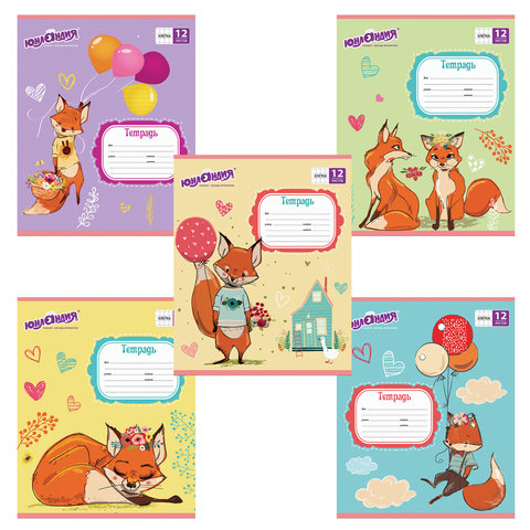 Тетрадь 12 л. ЮНЛАНДИЯ клетка, обложка картон, «ЛИСЯТА»