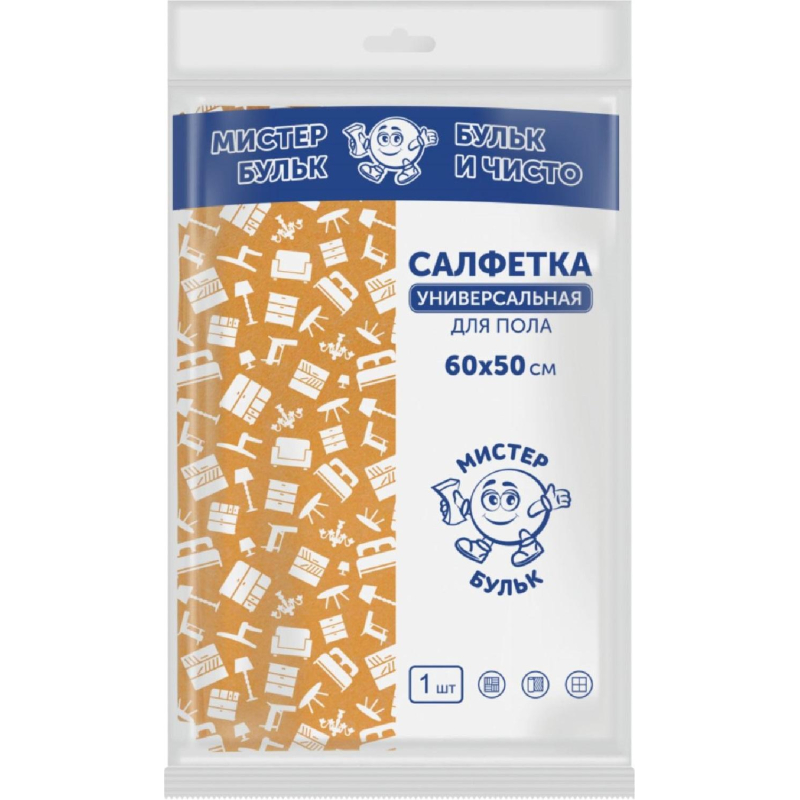 Тряпка для пола Мистер Бульк вискоза 60×50 см оранжевая. Назначение: Тряпка для пола из вискозы универсального применения. Сверхпрочная салфетка для мытья и полировки пола, дома, кухни, офиса, дачи и других помещений. Особенности и преимущества: Тряпочка для уборки обладают отличными впитывающими и очищающими свойствами. Могут использоваться в качестве салфеток для кухни, для сухой и влажной уборки. Отлично справляются со следами грязи и жира, впитывают воду в 8 раз больше собственного веса, в сухом виде образует электростатическое напряжение, которое притягивает частички пыли. Волокна половой тряпки проникают в мельчайшие поры очищаемой поверхности. Подходит для деликатных поверхностей, даже при сильном трении материал не оставляет царапин. Тряпки для уборки приятные на ощупь, легкие и удобные в применении, имеют высокую износостойкость, благодаря чему прослужат вам долгое время. Характеристики:- размер: 60×50 см; - цвет: оранжевый; - плотность: 120 к/кв. м. ;- состав: 50% вискоза, 50% полиэфир. Рекомендации по уходу: деликатная стирка.