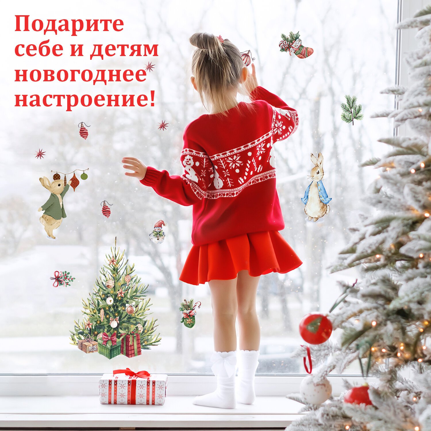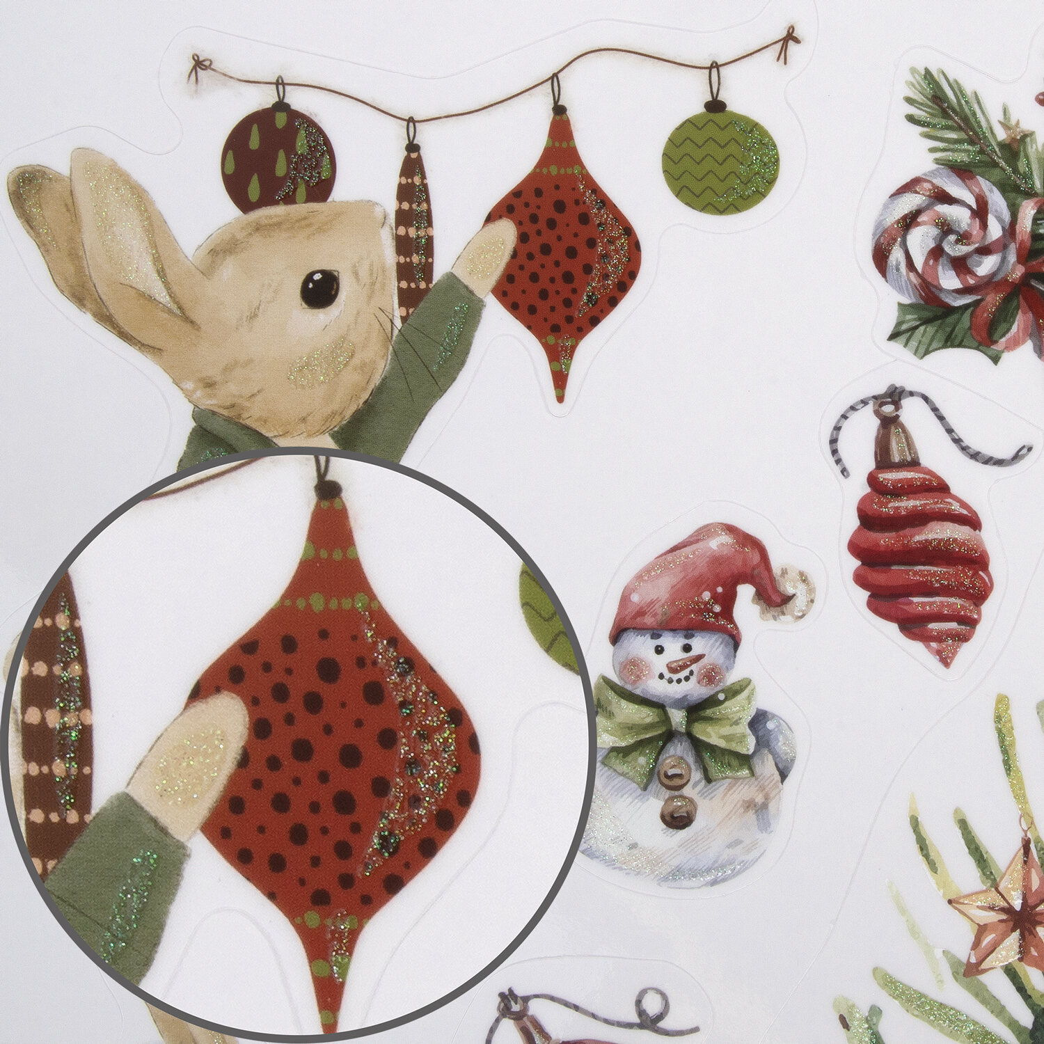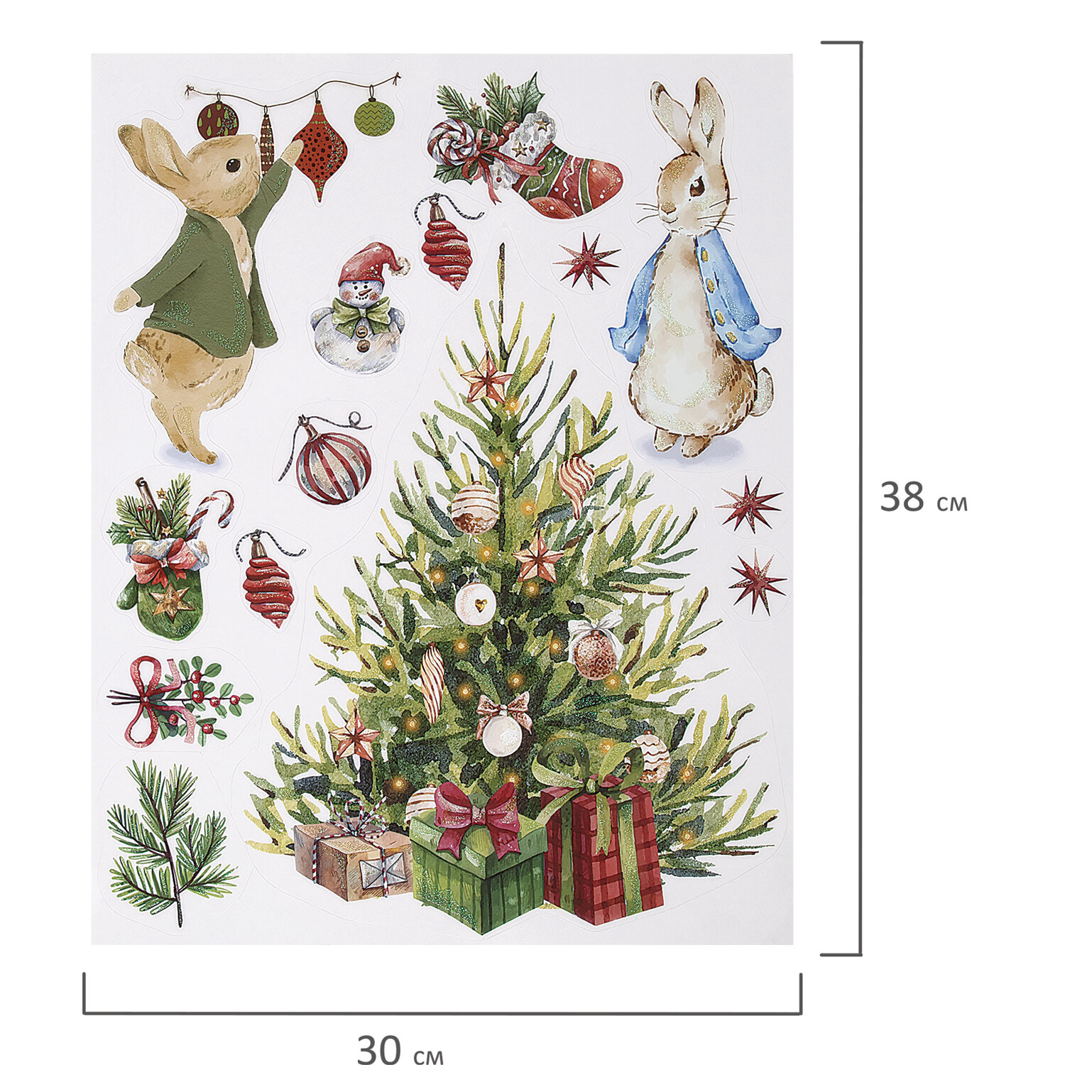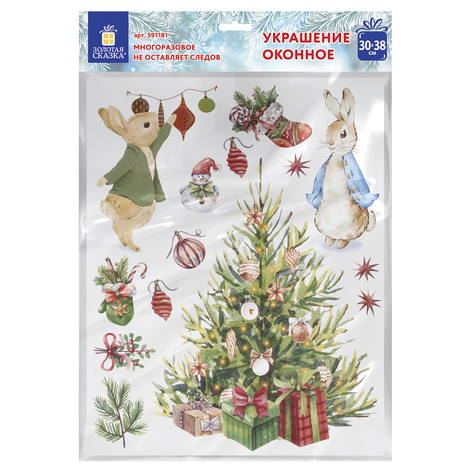 Изделие с изображением Снегурочки и зверят представляет собой наклейку, изготовленную из поливинилхлорида (ПВХ). Наклейка размером 30×38 см декорирована золотистым глиттером. Украшение предназначено для декорирования окон, зеркал, стекол и других ламинированных глянцевых поверхностей. Не оставляет клеевых следов и предназначено для многократного использования. Крепится к поверхности посредством статического эффекта. Украшение на белой картонной подложке упаковано в прозрачный полипропиленовый пакет на картонном подвесе.