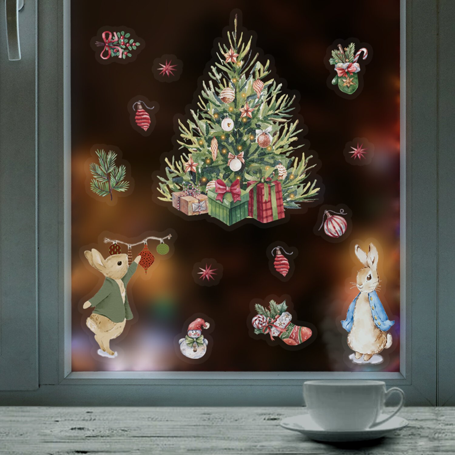 Украшение для окон и стекла ЗОЛОТАЯ СКАЗКА «Снегурочка и зверята», 30×38 см, ПВХ
