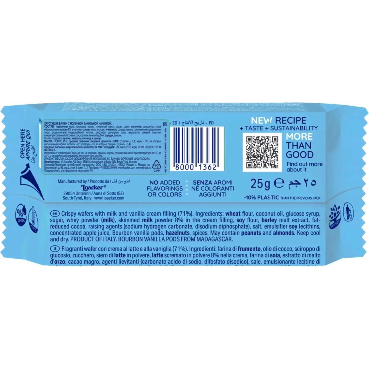 Вафли Loacker сэндвич ваниль 25гx25шт/уп 14012-029
