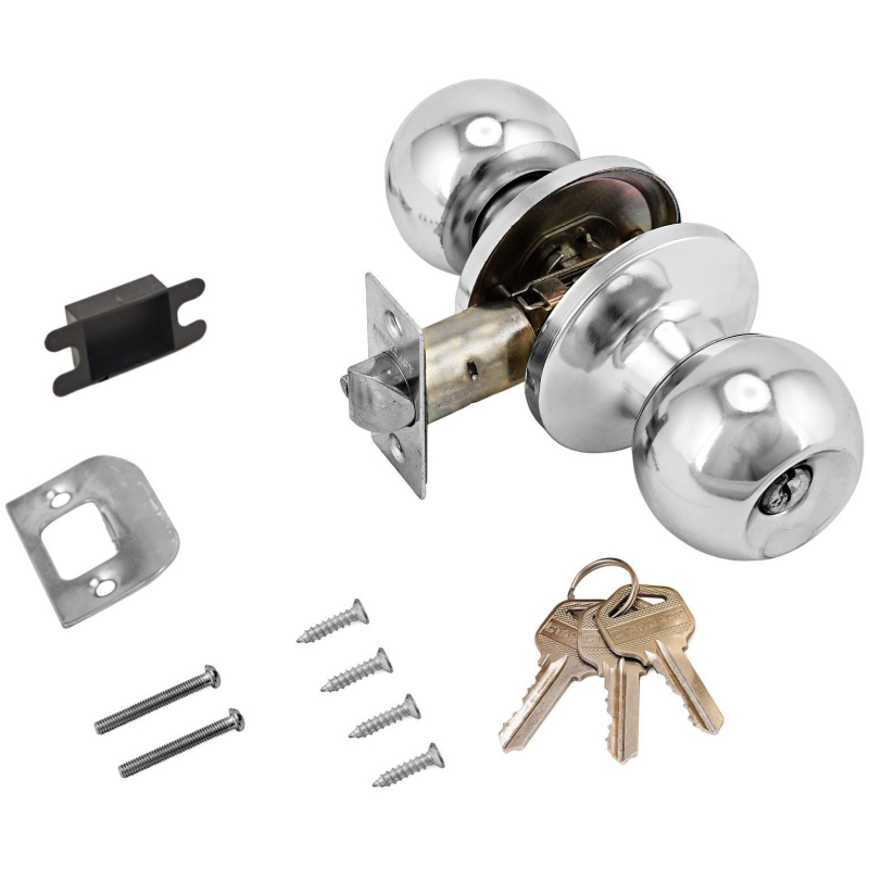 Внимание! Пожалуйста, проверяйте цвет изделия до начала сборки! Цвет на изображении товара в интернет-магазине или в печатном каталоге может отличаться от оригинала из-за особенностей цветопередачи. Ручка-защелка для межкомнатных дверей. Форма ручки - кнопка, круглая. Материал ручек и накладок-сталь, гальваническое покрытие. Предназначена для дверей толщиной 40 мм. Ключи в комплекте - 3 шт.